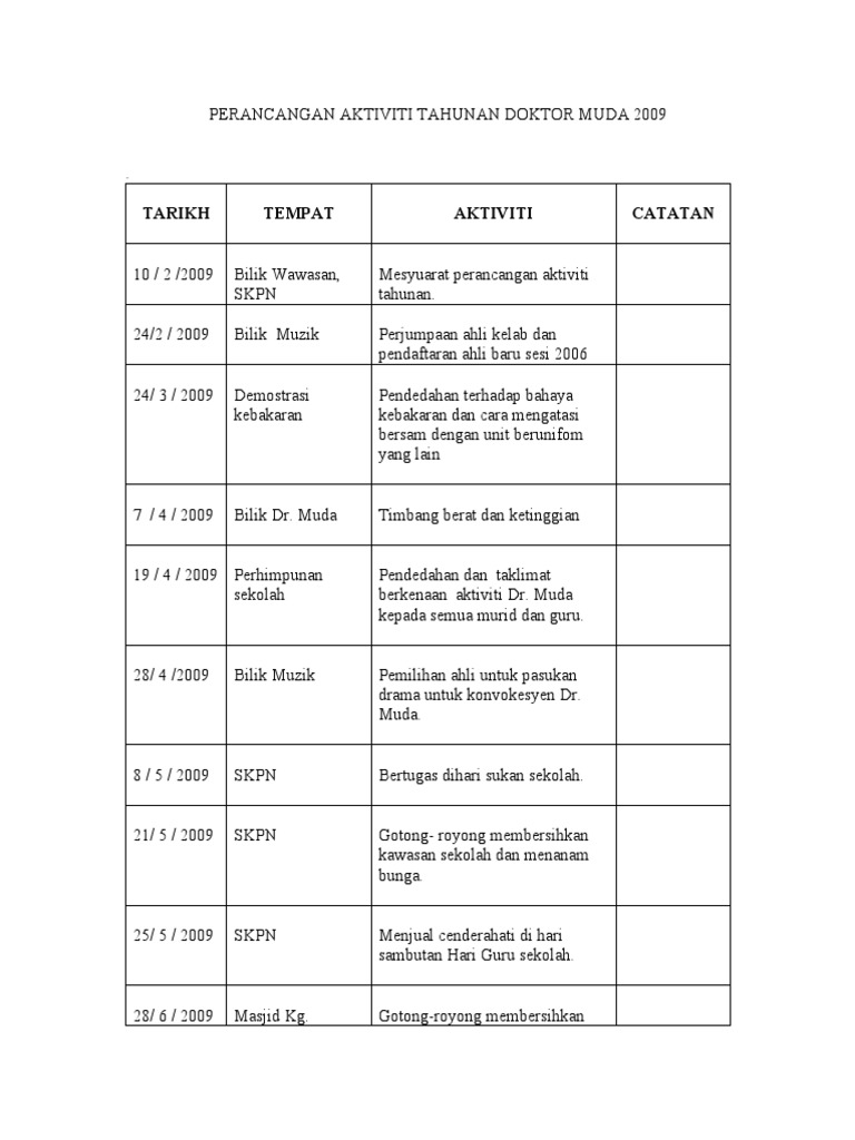 Rancangan Tahunan Kelab Doktor Muda Pdf